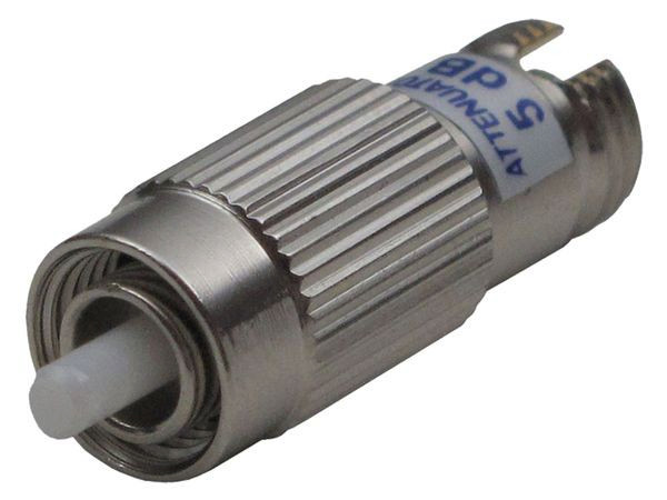 Optisches Dämpfungsglied 5 dB, zur Abdämpfung von Überpegeln in optischen SAT-ZF Verteilsystemen, FC/PC Buchse und Stecker