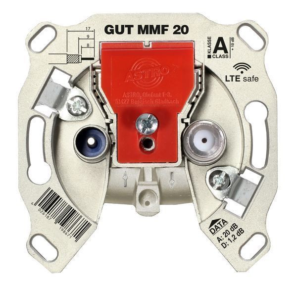 | Kurzbeschreibung | BK-Modem-Durchgangsdose, 5 - 1800 MHz, mit F-Anschluss, VFKD zertifiziert |