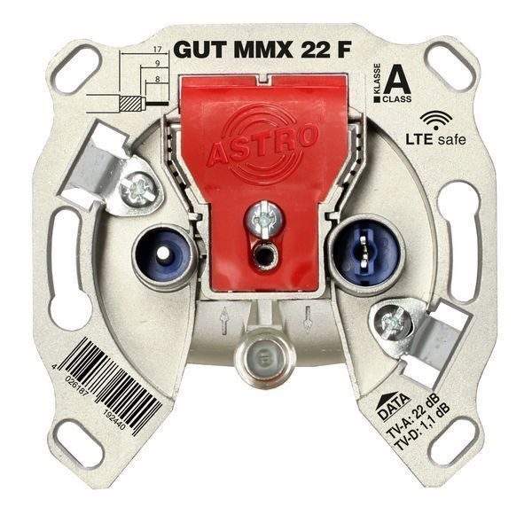 | Kurzbeschreibung | BK-Modem-Durchgangsdose, 5 - 1218 MHz, 22 dB Anschlussdämpfung |