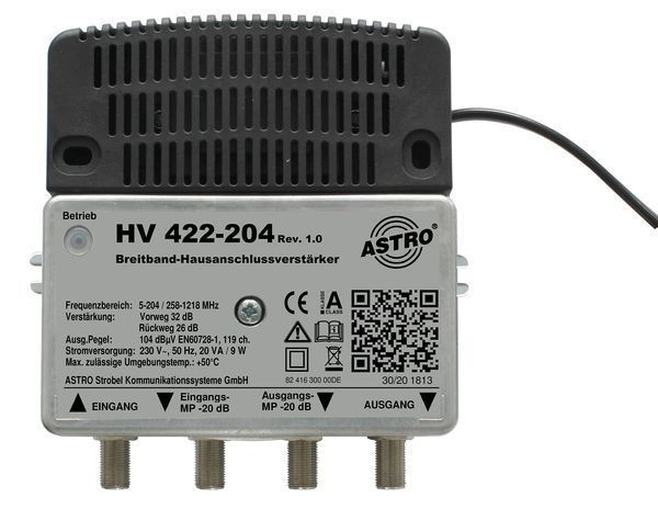 | Kurzbeschreibung | Breitbandverstärker mit 204 MHz Rückweg |