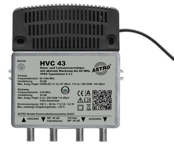 | Kurzbeschreibung | Breitbandverstärker mit F-Anschlüssen, VFKD zertifiziert Typklasse C (4.3) |