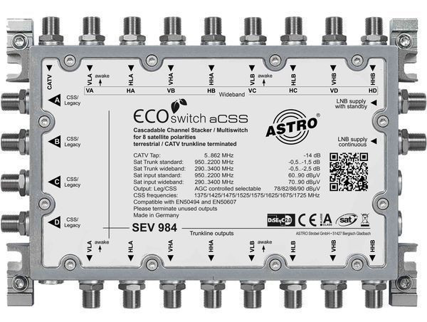 | Kurzbeschreibung | Einkabelumsetzer für 2 (4) SAT, 9 x F in, 4 x F out (8 UB) |