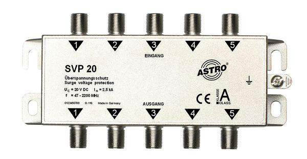Überspannungsschutz 5-fach, zum Schutz von Endgeräten vor Beschädigungen durch Überspannung, 5 - 2200 MHz, Durchgangsdämpfung ca. 1 dB, Ein- und Ausgänge F-Buchsen