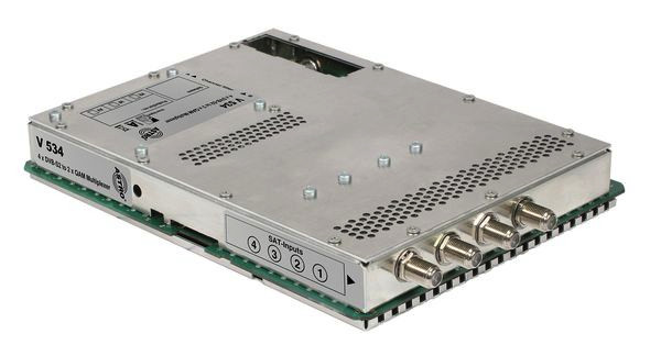 4-fach DVB-S2 in 2 x 1 QAM-Ausgangskanal Multiplexer, für V 16, Online-Service-PID-Filter, NIT-Unterstützung, optionales Ausgangskanalfilter V-KF... erhältlich