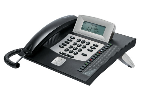Einsteiger-Systemtelefon mit beleuchtetem Touchdisplay (grafisch) und 15 programmierbaren Funktionstasten, automatische Erkennung der Anschlussart S0 oder UP0, Telefonbuch für 1.600 Einträge lokal im Telefon, Programmierbare Tasten für Belegt-, Zielwahl-, Wartefeld- und Anlagenfunktionen, Stromversorgung über den Systemanschluss;