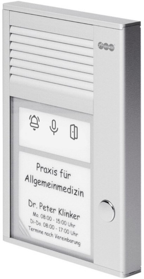 Produkttyp: Türstation, Anzahl Wohneinheiten: 1, Einbauort: Außenbereich, Montageart: Aufputz, Materialien: Kunststoff, Metall, Farbe: silber, Bildübertragung: nein, Nachtsichtfunktion: nein