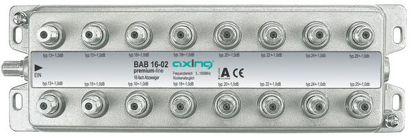 | Kurzbeschreibung | Abzweiger, 16-fach, 13-25 dB, 5-1006 MHz, F-Stecker, doppelt geschirmtes Gehäuse |