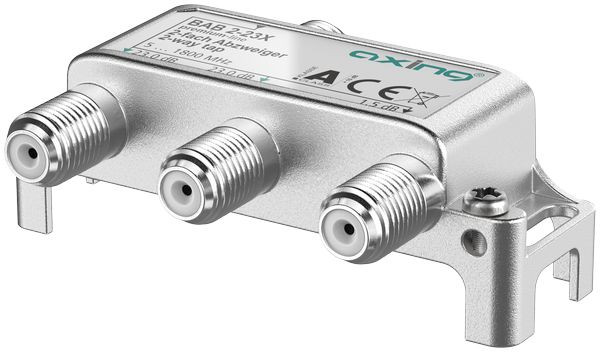 | Kurzbeschreibung | 2-fach Abzweiger, 23 dB, 5 - 1800 MHz, Klasse A (+10 dB) gemäß EN 50083-2 |