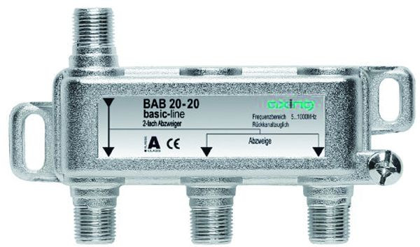 | Kurzbeschreibung | Abzweiger, 2-fach, 20 dB, 5-1006 MHz, F-Stecker, hohe Rückflussdämpfung, basic |