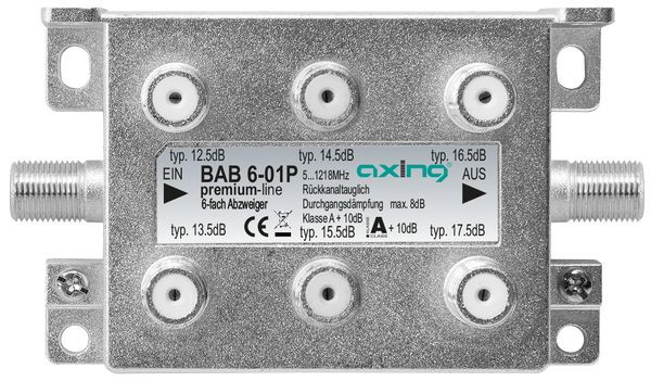 | Kurzbeschreibung | Abzweiger, 6-fach, 12,5 - 17,5 dB, 5 - 1218 MHz, F-Buchse, premium-line |