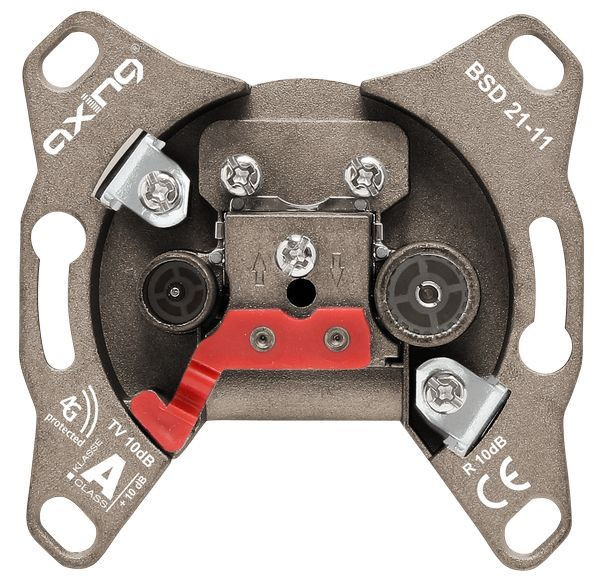 Hyperbreitband-Durchgangsdose 10 dB, 5 - 2200 MHz, CATV, SAT, DC-Durchlass Klasse A (+10 dB) gemäß EN 50083-2 Breitbandig rückkanaltauglich Montagefreundlich Absetzmaß 8/13 mm Oberflächenveredelt