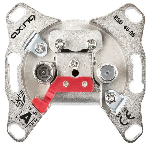 CATV/SAT-Durchgangsdose 8 dB, 5 - 2200 MHz Klasse A (+10 dB) gemäß EN 50083-2 Breitbandig rückkanaltauglich (EoC geeignet bis 204 MHz) Einkabeltauglich für Unicable I (EN50494) und Unicable II (EN50607) Oberflächenveredelt SAT = F-Buchse TV/Radio = IEC-Stecker