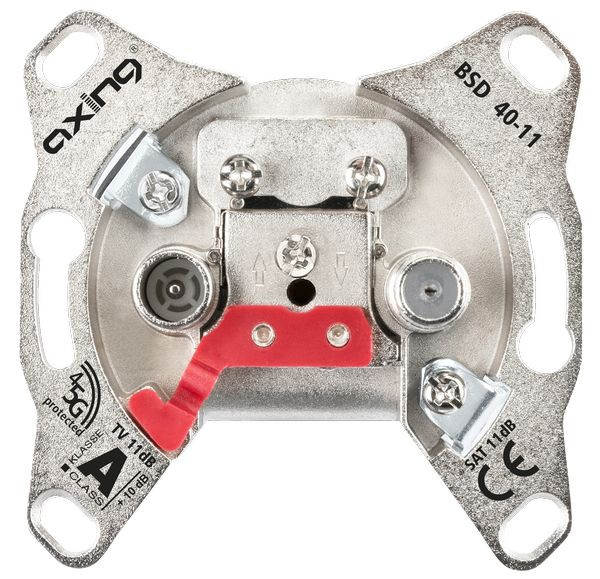 CATV/SAT-Durchgangsdose 11 dB, 5 - 2200 MHz Klasse A (+10 dB) gemäß EN 50083-2 Breitbandig rückkanaltauglich (EoC geeignet bis 204 MHz) Einkabeltauglich für Unicable I (EN50494) und Unicable II (EN50607) Oberflächenveredelt SAT = F-Buchse TV/Radio = IEC-Stecker