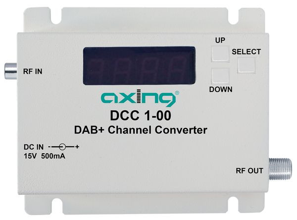 DAB+ Kanalumsetzer Zur Einspeisung terrestrisch empfangener DAB/DAB+-Signale in CATV-Kabelsysteme Wandelt einen Eingangskanal in einen beliebig wählbaren Ausgabekanal (5A bis 13F) Mehrere DCC 1-00 ermöglichen das Zusammenführen mehrerer, verteilt übertragener DAB-Kanäle und sparen dadurch Bandbreite im CATV-Spektrum Bereinigt das Frequenzband mit einem SAW-Filter Inkl. Netzteil