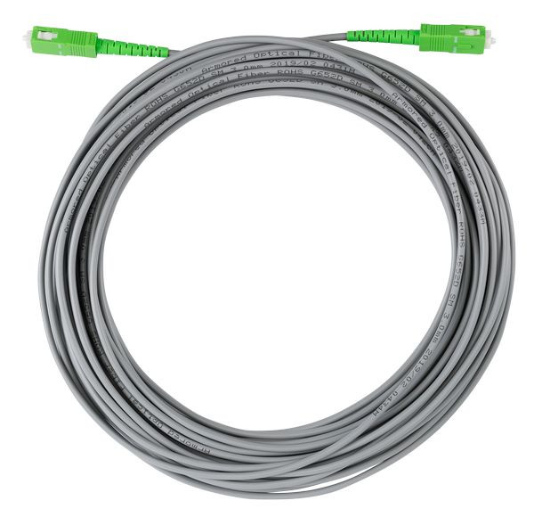 Optisches Kabel mit Stahlarmierung, 10 m 10 m im Ring im Polybeutel Konfektioniert mit SC/APC-Steckern Typ Single-Mode Farbe grau