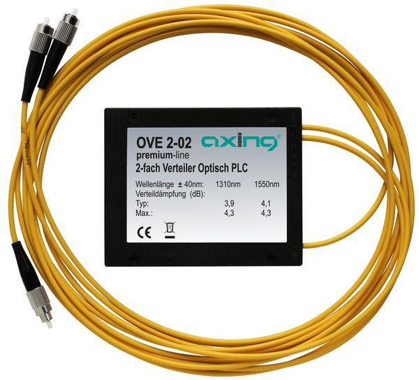 Optischer 2-fach-Verteiler Zur Verteilung optischer Signale Mit 1 m langen Anschlusskabeln mit FC/PC-Steckern