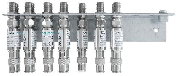 Erdungswinkel, zweireihig, Überspannungsschutz 13-fach Erdung und Potentialausgleich gemäß EN 60728-11 Für AXING Multischalter SPU 13xx-06 am Eingang Inkl. Überspannungsschutzgeräte SZU 6-02 Bestückt mit premium-line F-Doppelbuchsen CFA 26-02 und Quickfix-Adapter CFA 4-01