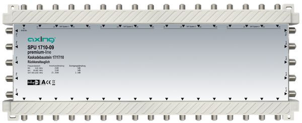 Passiver Kaskadierbaustein 17 in 10, Erweiterungsbaustein für SPU 1716-09, 17 Eingänge, 17 Ausgänge, 10 Ausgänge zu SAT-Empfänger, Rückkanal 5Â65 MHz