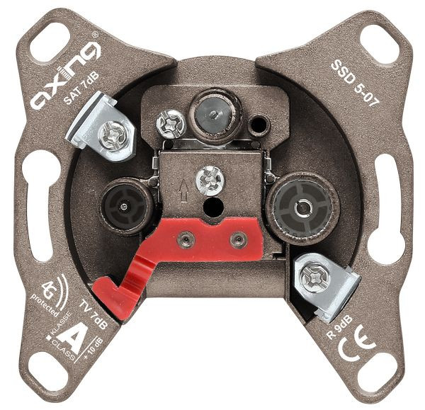 Universal-Enddose mit 7 dB Anschlussdämpfung, für CATV, SAT und Unicable-Systeme, nach EN 50494, rückkanaltauglich 5Â65 MHz, SAT-Anschluss diodenentkoppelt, verlängerte F-Buchse (montagefreundlich), neue verbesserte Kabelaufnahme, passend für alle gÃ