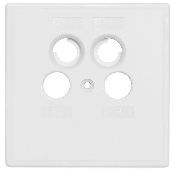 | Kurzbeschreibung | Antennensteckdosen-Abdeckung, 4-Loch, einteilig, 80 x 80 mm, TV, R, DATA, DATA |