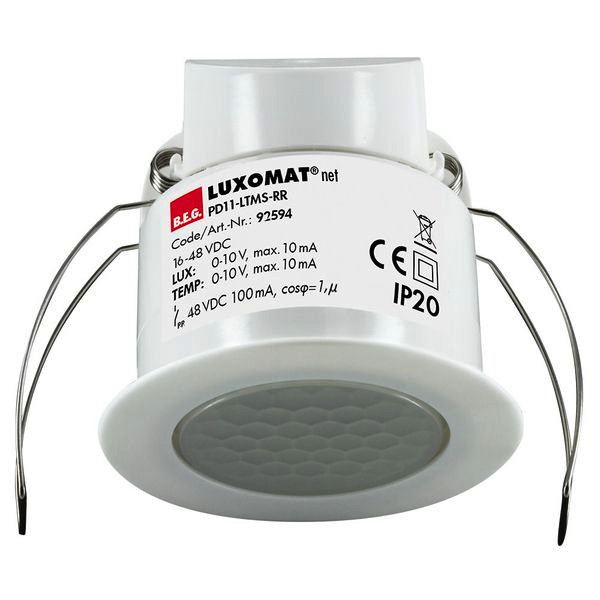 Besonders flacher Multisensor zur Erfassung von Präsenz, Temperatur- und Helligkeitswerten, Zur Integration in ein proprietäres Bussystem, Ausgabe der Bewegungserkennung über Schaltkontakt, Ausgabe des aktuellen Licht- und Temperaturwertes als Analogspannung, Federklemmen für den einfachen und schnellen Einbau in abgehängte Decken, Inklusive Abdecklamellen und Klemmring für den Einbau in Leuchten, Mit Zubehör für Unterputzmontage in Decken- und Sichtbeton.