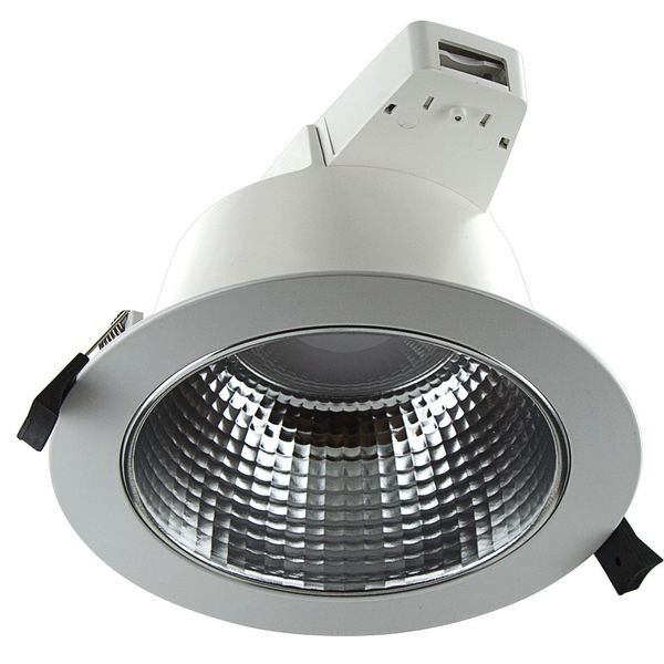 LED-Downlight zum Deckeneinbau, Robustes Kunststoffgehäuse mit integriertem Betriebsgerät, Aluminiumreflektor mit Fasetten für eine gute Entblendung, Sehr flacher, weisser Abdeckring, Unterseitig spritzwassergeschützt (IP54), oberseitiges Gehäuse IP20, Drei Lichtfarben in einer Leuchte, per Schalter wählbar zwischen warm-, neutral- oder tageslichtweißer Beleuchtung, Energieeffiziente Leuchte mit einer langen Lebensdauer > 50.000 h, Jede Lichtfarbe ist extern dimmbar, Einfache Montage und elektrischer Anschluss