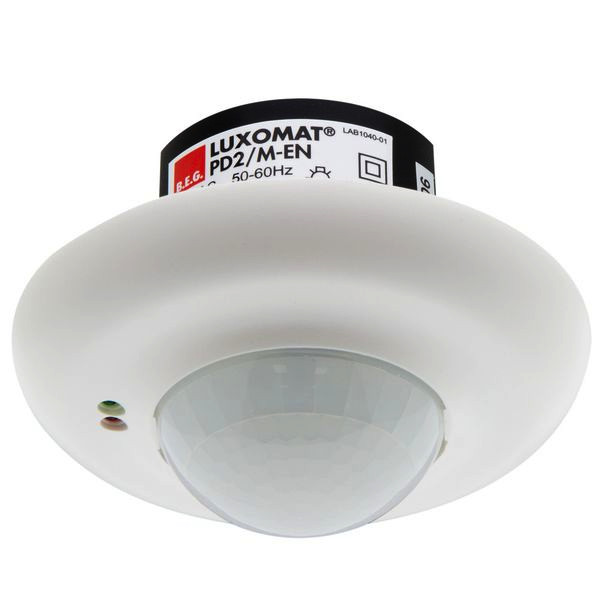 wie PD1 jedoch mit kreisförmigem Erfassungsbereich, Ø 10 m Reichweite, Mastergeräte fernbedienbar mit IR-PD-2C bzw. IR-PDim (als Zubehör, separat zu bestellen)