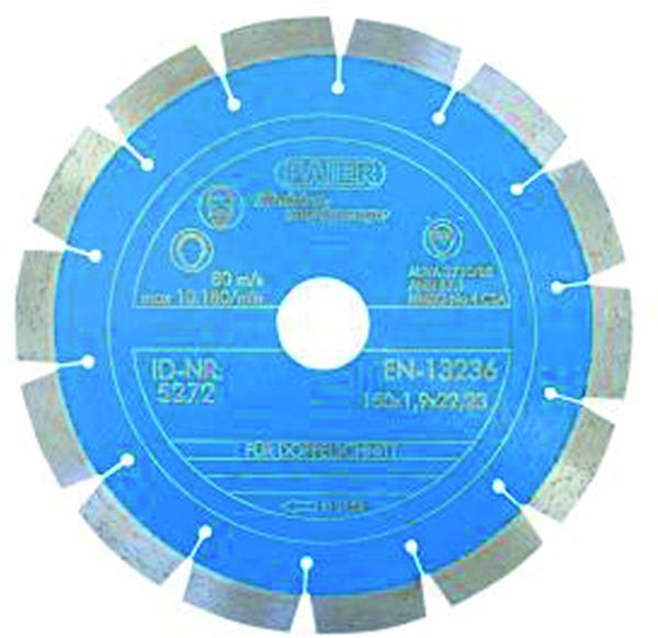 Blau, Trocken- und Nassschnitt Ø 150 mm, Lasergeschweißt, Segmenthöhe 10mm, Einsatzbereich Beton, Beton armiert, Waschbeton, Kalksandstein