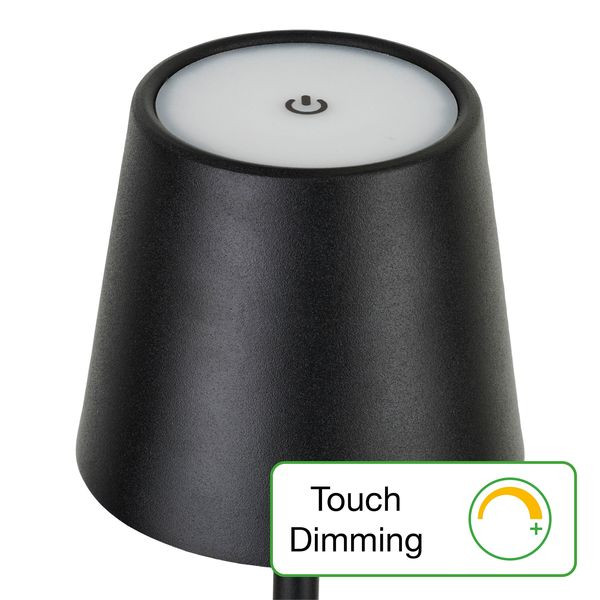 BAI LED Table Lamp Charge&Go Black 3.5W 2700K 210lm IP54 Touch Dimmable Rechargeable USB-C 5V DC 380x105mm Anti-slip base
