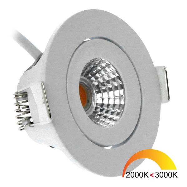 ECO DIM ED-10058 LED Einbaustrahler 5W Dimmbar Dim to warm 2000K-3000K 60° IP54 62x23mm Schwenkbar Rund Weiß Einbaudurchmesser 55mm