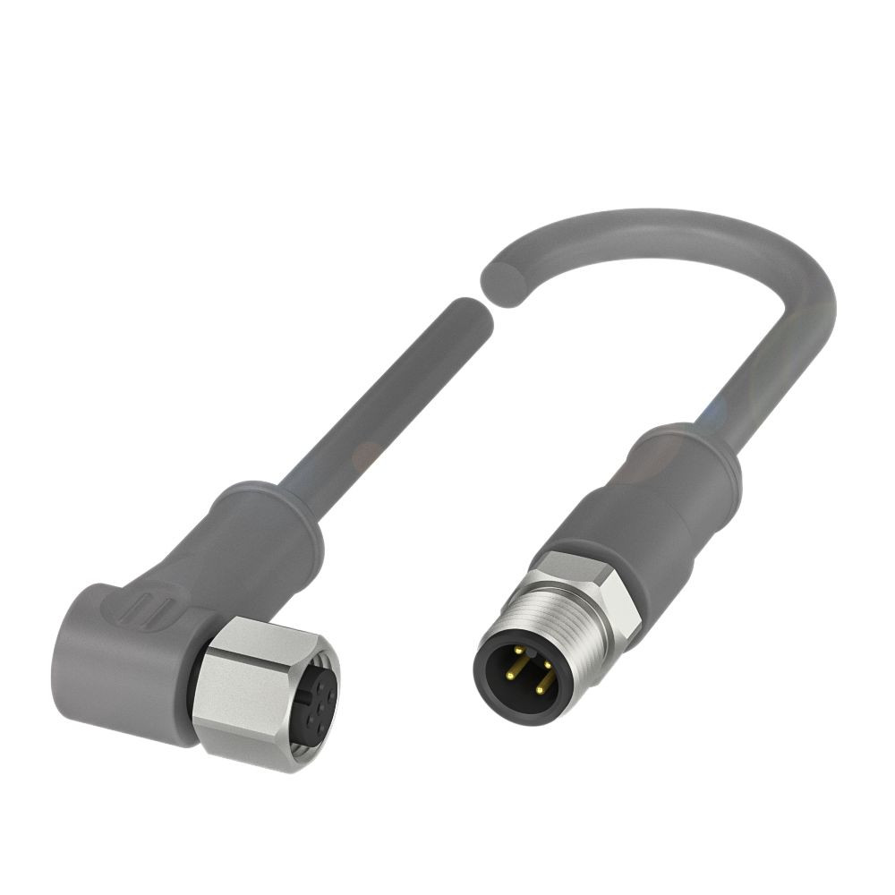 Mit unseren robusten Verbindungsleitungen werden Signale, Daten und Leistung stets zuverlässig und sicher übertragen. In unserer riesigen Auswahl finden Sie garantiert den richtigen Anschluss für Ihre Applikation in Ihrer Industrie.Sie können aus verschiedenen Kabelarten und verschiedensten Steckverbindern wählen. Anschluss 1 = M12x1-Buchse, gewinkelt, 5-polig, A-codiert, Anschluss 2 = M12x1-Stecker, gerade, 4-polig, A-codiert, Kabel = PUR geschirmt grau, 10 m, schleppkettentauglich, Anzahl der Leiter = 4, Kabeltemperatur, feste Verlegung = -50...80 °C, Kabeltemperatur, flexible Verlegung = -25...80 °C, Betriebsspannung Ub = 250 VDC / 250 VAC, Nennstrom (40 °C) = 4.0 A, Schutzart = IP67/IP67, Zulassung/Konformität = CE, Ecolab, WEEE