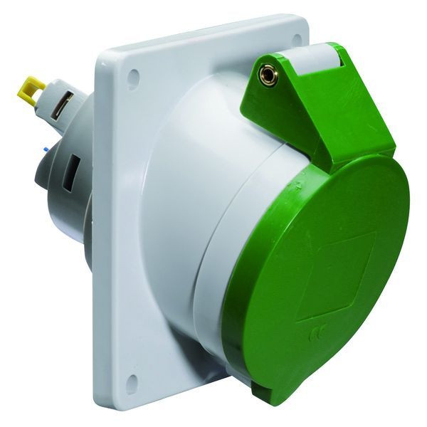| Kurzbeschreibung | Anbausteckdose QUICK-CONNECT geneigt 16A 4p >50V grün 100-300Hz 10h, IP44 |