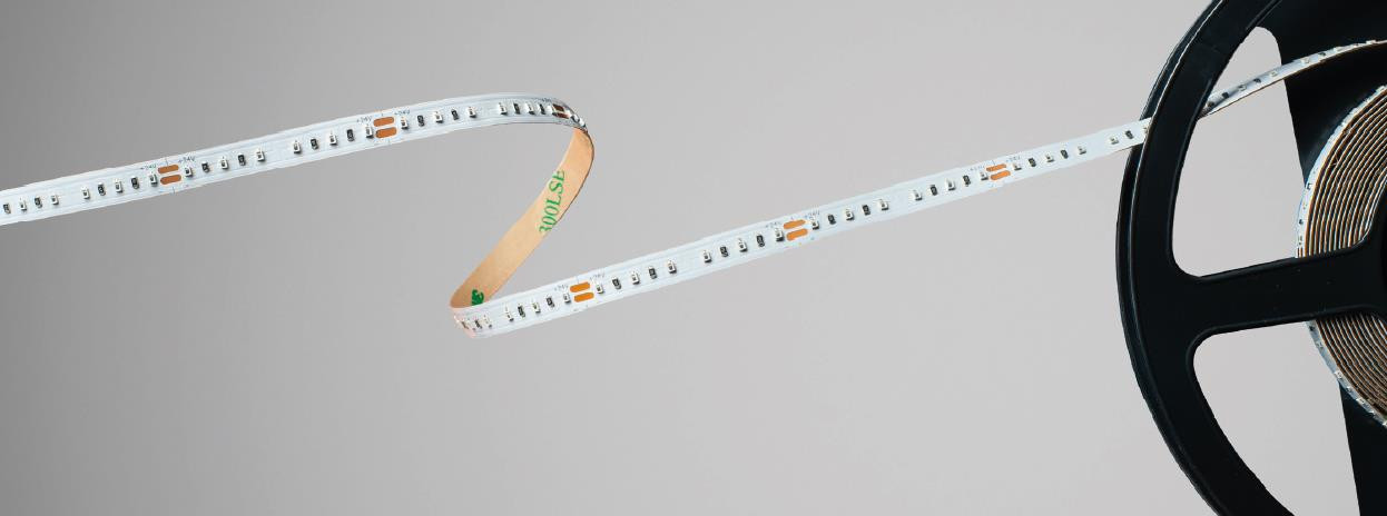 LED-Streifen für einfarbige Lichtlinien, einfache Motage durch rückseitiges Klebeband, teilbar mittels Schere an Markierung