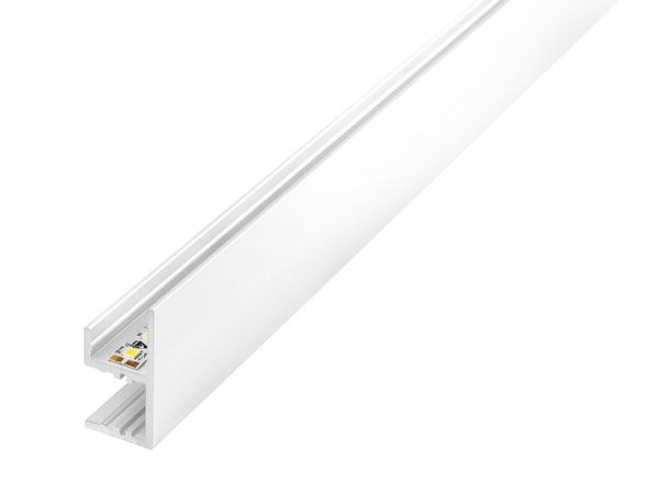 Hochwertiges Aluminium-Wandprofil, pulverbeschichtet, ideal geeignet zur indirekten Beleuchtung ohne bauseits vorhandene Voute, wahlweise nach oben oder unten abstrahlend, Abmessung (BxH): 37,3x18,4mm