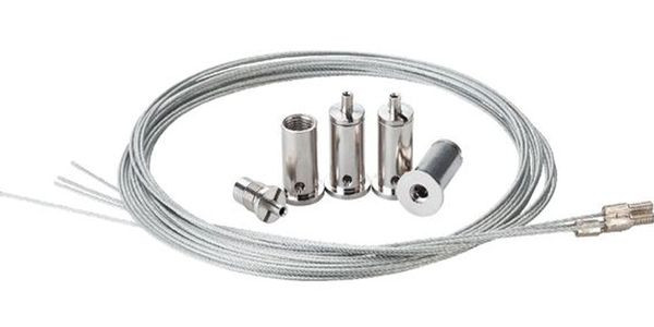 Abhängung zur Deckenbefestigung, (4x 150cm Drahtseil Ø 1mm mit M4 Gewinde, 4x Deckenhalter) für Profillängen > 3m