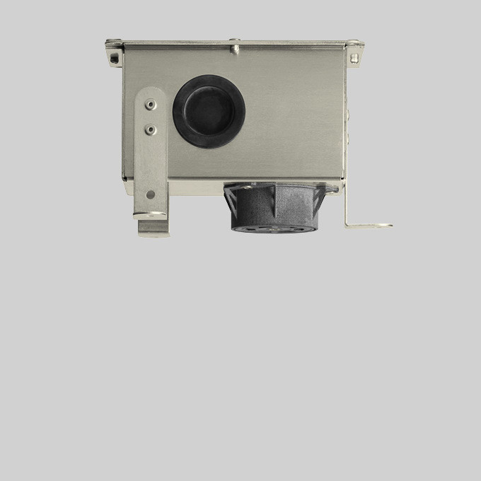 BEGA Einbaugehäuse 13617 für die Montage von Deckeneinbauleuchten in Betondecken. Einbaugehäuse aus Aluminium. Einbauöffnung Ø 50 mm. 2 gegenüberliegende Leitungseinführungen für Installationsrohre max. ø 30 mm. Abmessungen: 155 x 105 x 110 mm.
