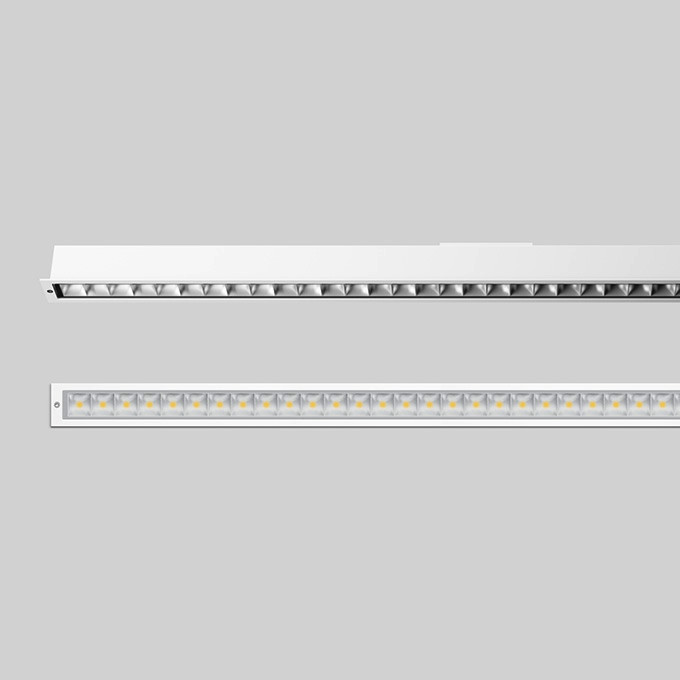 BEGA Deckeneinbau-Tiefstrahler 24305K3. Symmetrisch streuende Lichtstärkeverteilung. LED, 54,4 W Leuchten-Anschlussleistung, Leuchten-Lichtstrom 6955 lm, Farbtemperatur 3000 K. Farbwiedergabeindex (CRI) > 80. Mit austauschbarem BEGA LED-Modul mit Übertemperaturschutz und einer Lebenserwartung von mindestens 50.000 Betriebsstunden. 20-jährige Nachliefergarantie auf das LED-Modul und die Verschleißteile. Mit LED-Netzteil, DALI-steuerbar?, 220-240 V, 0/50-60 Hz. Schutzart IP 65. Leuchte aus Aluminiumguss, Aluminium und Edelstahl Beschichtungstechnologie BEGA Unidure® , Farbe Weiß. Sicherheitsglas mit optischer Struktur. BEGA Vortex Optics® Reflektoroberfläche aus eloxiertem Reinstaluminium. Anschlussdose mit 2 Leitungsverschraubungen zur Durchverdrahtung der Netzanschlussleitung von ø 5-13 mm, max. 5 x 2,5 qmm. Abmessungen: 1535 x 76 x 105 mm. Leuchte für den Einbau in Betondecken in das Einbaugehäuse 13581 oder für den Einbau in Zwischendecken und Leichtbauwänden mit dem Einbaurahmen 13518.