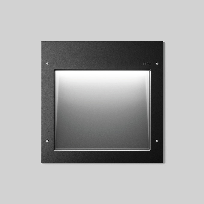 BEGA Notlichtleuchte, Wandeinbauleuchte 24646K3. Asymmetrisch-bandförmige Lichtstärkeverteilung. Die Farbtemperatur der Leuchte kann wahlweise auf 3000 K oder 4000 K eingestellt werden. LED, 25 W Leuchten-Anschlussleistung, Leuchten-Lichtstrom 2909 lm im Betrieb bei Farbtemperatur 3000 K. Leuchten-Lichtstrom 3055 lm im Betrieb bei Farbtemperatur 4000 K. Farbwiedergabeindex (CRI) > 80. Mit austauschbarem BEGA LED-Modul mit einer mittleren Bemessungslebensdauer von 175.000 Betriebsstunden (L80B50 bei ta = 25 °C). 20-jährige Nachliefergarantie auf das LED-Modul und die Verschleißteile. Mit BEGA Ultimate Driver® LED-Netzteil, DALI-steuerbar, 220-240 V, 50/60 Hz. Eingebauter LiFePo4-Akkumulator für 3 h Notbetrieb. Notlichtversorgungsgerät mit Selbsttestfunktion in der Leuchte. Im Notlichtbetrieb wird ein Lichtstrom von 495 lm bzw. 519 lm erreicht. Mit integrierter Heizung. Schutzart IP 65. Leuchtengehäuse aus hochkorrosionsfestem Aluminiumguss, Aluminium und Edelstahl. Beschichtungstechnologie BEGA Tricoat® . Farbe Grafit. Sicherheitsglas mit optischer Struktur. Zwei Leitungsverschraubungen zur Durchverdrahtung der Netzanschlussleitung von ø 8-15 mm. Abmessungen Abdeckrahmen: 300 x 300 mm. Leuchte für den Einbau in eine Einbauöffnung mit den Abmessungen 280 x 280 x 120 mm oder in das Einbaugehäuse 10492 oder Einbaugehäuse für Wärmedämmverbundsysteme WDVS 13 606.