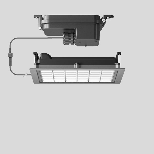 BEGA Deckeneinbau-Kompakttiefstrahler 24687AK3. Breitstreuende Lichtstärkeverteilung. LED, 60 W Leuchten-Anschlussleistung, Leuchten-Lichtstrom 6700 lm, Halbstreuwinkel 90°, Farbtemperatur 3000 K. Farbwiedergabeindex (CRI) > 80. Mit austauschbarem BEGA LED-Modul mit Übertemperaturschutz und einer Lebenserwartung von mindestens 50.000 Betriebsstunden. 20-jährige Nachliefergarantie auf das LED-Modul und die Verschleißteile. Mit LED-Netzteil, DALI-steuerbar, 220-240 V, 0/50-60 Hz im externen Gehäuse. 2 Leitungsverschraubungen mit Zugentlastung zur Durchverdrahtung der Netzanschlussleitung von ø 5-13 mm, max. 5 x 1,5 qmm. Schutzart IP 65. Ballwurfsicher. Leuchte aus Aluminiumguss, Aluminium und Edelstahl Beschichtungstechnologie BEGA Unidure® , Farbe Silber. Sicherheitsglas mit optischer Struktur. Reflektoroberfläche aus eloxiertem Reinstaluminium. 0,5 m Verbindungsleitung zwischen Leuchte und Netzteil. Für Einbau in Zwischendecken mit einer Materialstärke von 5-55 mm. Abmessungen: 275 x 275 x 100 mm. Leuchte für den Einbau in einer Einbauöffnung mit den Abmessungen 260 x 260 x 65 mm oder in das Einbaugehäuse 13578.