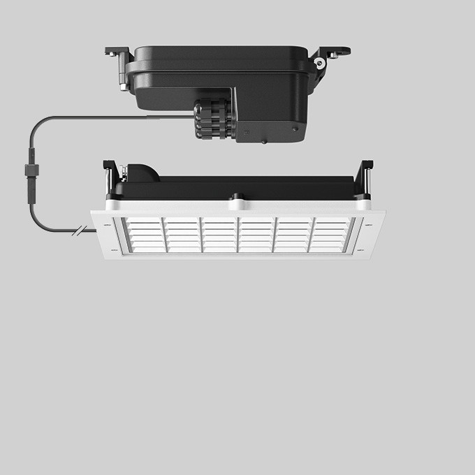 BEGA Deckeneinbau-Kompakttiefstrahler 24687K3. Breitstreuende Lichtstärkeverteilung. LED, 60 W Leuchten-Anschlussleistung, Leuchten-Lichtstrom 6700 lm, Halbstreuwinkel 90°, Farbtemperatur 3000 K. Farbwiedergabeindex (CRI) > 80. Mit austauschbarem BEGA LED-Modul mit Übertemperaturschutz und einer Lebenserwartung von mindestens 50.000 Betriebsstunden. 20-jährige Nachliefergarantie auf das LED-Modul und die Verschleißteile. Mit LED-Netzteil, DALI-steuerbar, 220-240 V, 0/50-60 Hz im externen Gehäuse. 2 Leitungsverschraubungen mit Zugentlastung zur Durchverdrahtung der Netzanschlussleitung von ø 5-13 mm, max. 5 x 1,5 qmm. Schutzart IP 65. Ballwurfsicher. Leuchte aus Aluminiumguss, Aluminium und Edelstahl Beschichtungstechnologie BEGA Unidure® , Farbe Weiß. Sicherheitsglas mit optischer Struktur. Reflektoroberfläche aus eloxiertem Reinstaluminium. 0,5 m Verbindungsleitung zwischen Leuchte und Netzteil. Für Einbau in Zwischendecken mit einer Materialstärke von 5-55 mm. Abmessungen: 275 x 275 x 100 mm. Leuchte für den Einbau in einer Einbauöffnung mit den Abmessungen 260 x 260 x 65 mm oder in das Einbaugehäuse 13578.