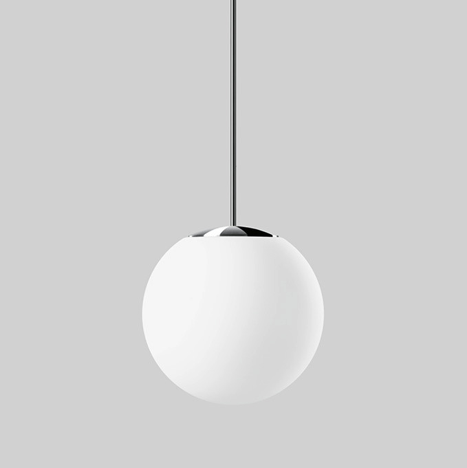 BEGA Pendelleuchte 45727.3PK3 für den Innenbereich. Freistrahlendes Licht. Für 1 Lampe mit einer Leistung von max. 150 W, Sockel E 27. inklusive BEGA LED-Leuchtmittel 13592, 12 W, 1400 lm, Farbtemperatur 3000 K. Leuchtengehäuse, Rohrpendel und Baldachin aus Metall. Oberfläche Chrom. Kunststoffkugel weiß. Kugeldurchmesser 350 mm, Gesamtlänge 1900 mm.