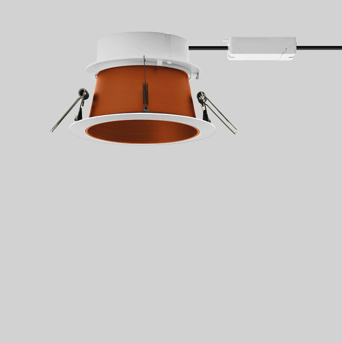 BEGA STUDIO LINE Deckeneinbauleuchte 50579.6K3 für den Innenbereich. Symmetrisch streuende Lichtstärkeverteilung. LED, 20 W Leuchten-Anschlussleistung, Leuchten-Lichtstrom 1049 lm, Farbtemperatur 3000 K. Farbwiedergabeindex (CRI) > 90. Mit austauschbarem BEGA LED-Modul mit Übertemperaturschutz und einer Lebenserwartung von mindestens 50.000 Betriebsstunden. 20-jährige Nachliefergarantie auf das LED-Modul und die Verschleißteile. Mit externem LED-Netzteil 220-240 V, 0/50-60 Hz. Schutzklasse II. Leuchtengehäuse aus Aluminiumguss. Reflektor Innenfarbton kupfer matt. Lichtstreuende Scheibe. Abschlussring Farbe samtweiß. Leuchte für den Einbau in eine Einbauöffnung mit den Abmessungen Ø 141 x 90 mm. Für Einbau in Zwischendecken mit einer Materialstärke von 5-30 mm. Abmessungen Ø 150 x 90 mm.