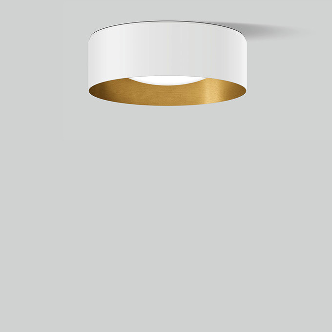 BEGA STUDIO LINE Deckenleuchte 51017.4K3 für den Innenbereich. Nach unten gerichtetes entblendetes Licht. LED, 15,5 W Leuchten-Anschlussleistung, Leuchten-Lichtstrom 961 lm, Farbtemperatur 3000 K. Farbwiedergabeindex (CRI) > 90. Mit austauschbarem BEGA LED-Modul mit Übertemperaturschutz und einer Lebenserwartung von mindestens 50.000 Betriebsstunden. 20-jährige Nachliefergarantie auf das LED-Modul und die Verschleißteile. Mit LED-Netzteil 220-240 V, 50-60 Hz. Leuchtengehäuse aus Aluminium. Oberfläche Farbe samtweiß. Innenfarbton messing matt. Schlagfeste Kunststoffabdeckung, weiß mit Bajonettverschluss. Zwei Leitungseinführungen zur Durchverdrahtung der Netzanschlussleitung bis Ø 10,5 mm. Leuchtendurchmesser 260 mm, Höhe 105 mm.