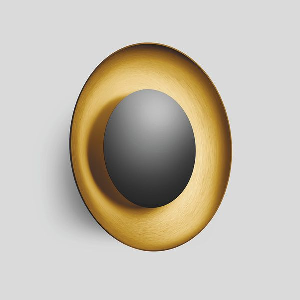 BEGA STUDIO LINE Wandleuchte 51220.4K3 für den Innenbereich. Abgeblendetes Licht. Lichtaustritt 360°. LED, 36,5 W Leuchten-Anschlussleistung, Leuchten-Lichtstrom 850 lm, Farbtemperatur 3000 K. Farbwiedergabeindex (CRI) > 90. Mit austauschbarem BEGA LED-Modul mit Übertemperaturschutz und einer Lebenserwartung von mindestens 50.000 Betriebsstunden. 20-jährige Nachliefergarantie auf das LED-Modul und die Verschleißteile. Mit LED-Netzteil, DALI-steuerbar, 220-240 V, 0/50-60 Hz. Leuchtengehäuse aus Aluminium. Oberfläche Farbe samtschwarz. Innenfarbton messing matt. Innenliegende Kunststoffabdeckung, transluzent-weiß. Eine Leitungseinführung zur Durchverdrahtung der Netzanschlussleitung. Leuchtendurchmesser 700 mm, Tiefe 100 mm.
