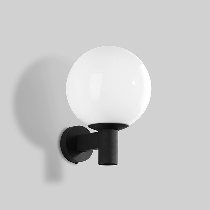 BEGA Wandleuchte 55454K3. Freistrahlendes Licht. Für 1 Lampe mit einer Leistung von max. 75 W, Sockel E 27. inklusive BEGA LED-Leuchtmittel 13 588, 6,5 W, 1055 lm, Farbtemperatur 3000 K. Schutzart IP 44. Leuchte aus Aluminiumguss und Edelstahl Beschichtungstechnologie BEGA Unidure® , Farbe Grafit. Opalglas mit Gewinde. Eine Leitungseinführung für Netzanschlussleitung bis Ø 10,5 mm, max. 3 x 1,5 qmm. Kugeldurchmesser 250 mm, Höhe 350 mm. Montageplatten-Durchmesser: 110 mm.