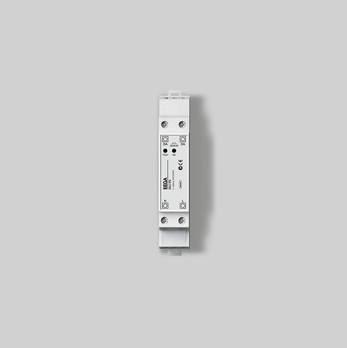 BEGA DALI Stromversorgung 70866 für Hutschienenmontage, versorgt DALI Betriebsgeräte, die keine eigene Stromversorgung integriert haben. Versorgungsspannung 120-240 V ? 50/60 Hz. DALI-Ausgangsspannungsbereich 12-20,5 V DC, 16 V typ. Maximaler Ausgangsstrom 250 mA, garantierter Ausgangsstrom 220 mA. Schutzart IP 20.