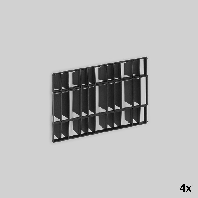 BEGA Raster 71106 für BEGA Scheinwerfer. Das Raster verhindert den seitlichen Einblick bis 45° aus allen Richtungen. Innenliegendes Raster aus glasfaserverstärktem Kunststoff. Farbe Schwarz.