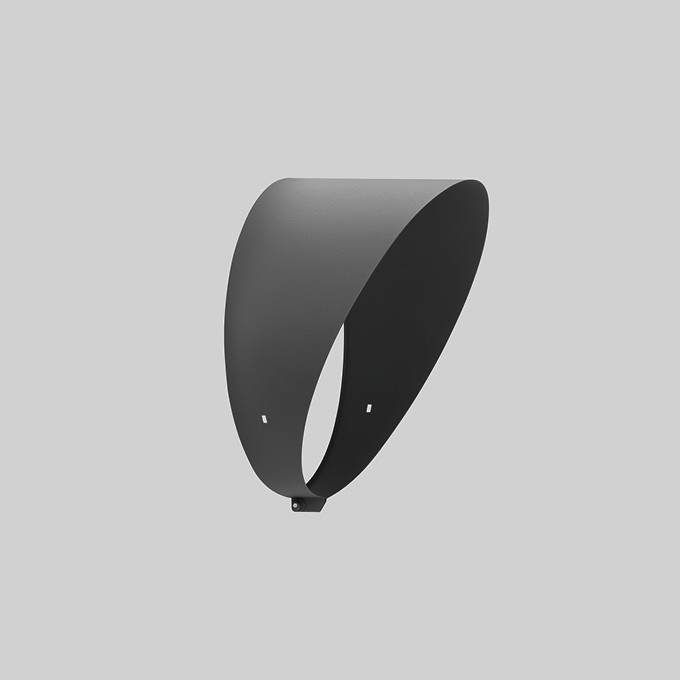 BEGA Blende 71121, aufsteckbar, für BEGA Scheinwerfer. Die Blende ist um 360° montierbar und verhindert den seitlichen Einblick aus einer Richtung bis 45°. Edelstahl, Werkstoff-Nr. 1.4301, pulverbeschichtet, Farbe Grafit.