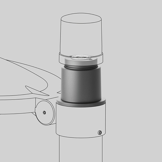 BEGA Mastaufsatz 71220A mit NEMA 7-Socket nach ANSI C 136.41-2013 zur Montage auf BEGA Mastaufsatzleuchten. Aluminiumguss, glasfaserverstärkter Kunststoff und Edelstahl Beschichtungstechnologie BEGA Unidure® , Farbe Silber. Mit Anschlussleitung JZ-500 PUR 7 x 1 qmm, Länge 10 m. Höhe 115 mm. Durchmesser: 82 mm.