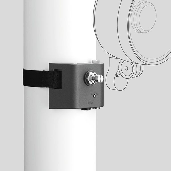 BEGA Spanngurt mit Anschlussadapter 71225. Für die Montage von Scheinwerfern mit Anschlussadapter an Bäumen, Masten oder Pfeilern oder zylindrischen Baukonstruktionen. Spanngurtträger besteht aus Aluminiumguss und Edelstahl. Spanngurt aus Polyester, Farbe schwarz. 30 mm breit · Länge: 2,2 m.